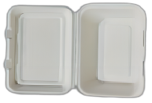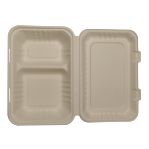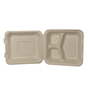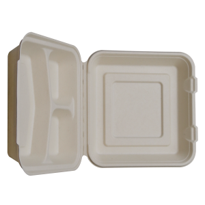 - Bagasse Clamshell8″ 3-compartment Clamshell