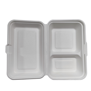 - Bagasse Clamshell1000ml 2-compartment Clamshell